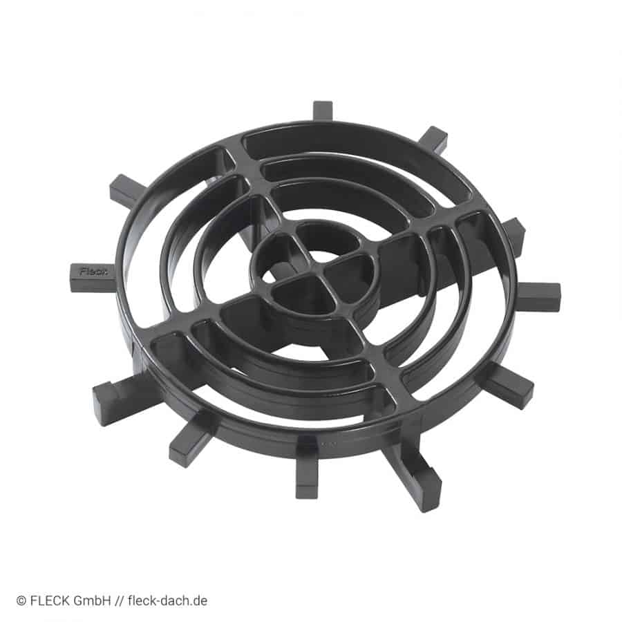 Schützt Dachentwässerungssysteme zuverlässig vor Laub und grobem Schmutz und lässt sich passgenau mit gängigen FLECK Flachdach-Abläufen und Lüftern kombinieren.