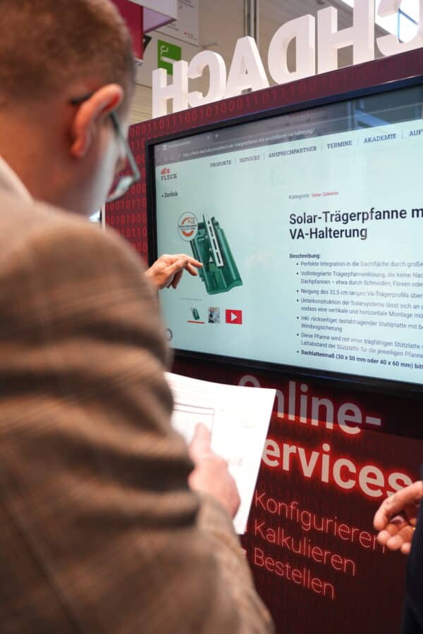 Die neuen digitalen Services von FLECK wurden auch auf der DACH + HOLZ 2026 in Köln am Messestand präsentiert.