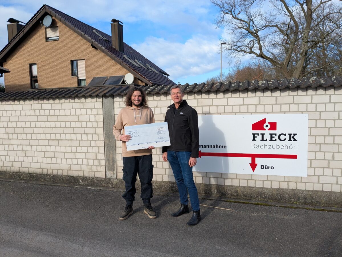 Fabian Ewald (r.) auf Übergabe-Tour: Auch Klaus Pscholka (l.) nimmt den Tankgutschein im Wert von 150,00 Euro gerne entgegen.